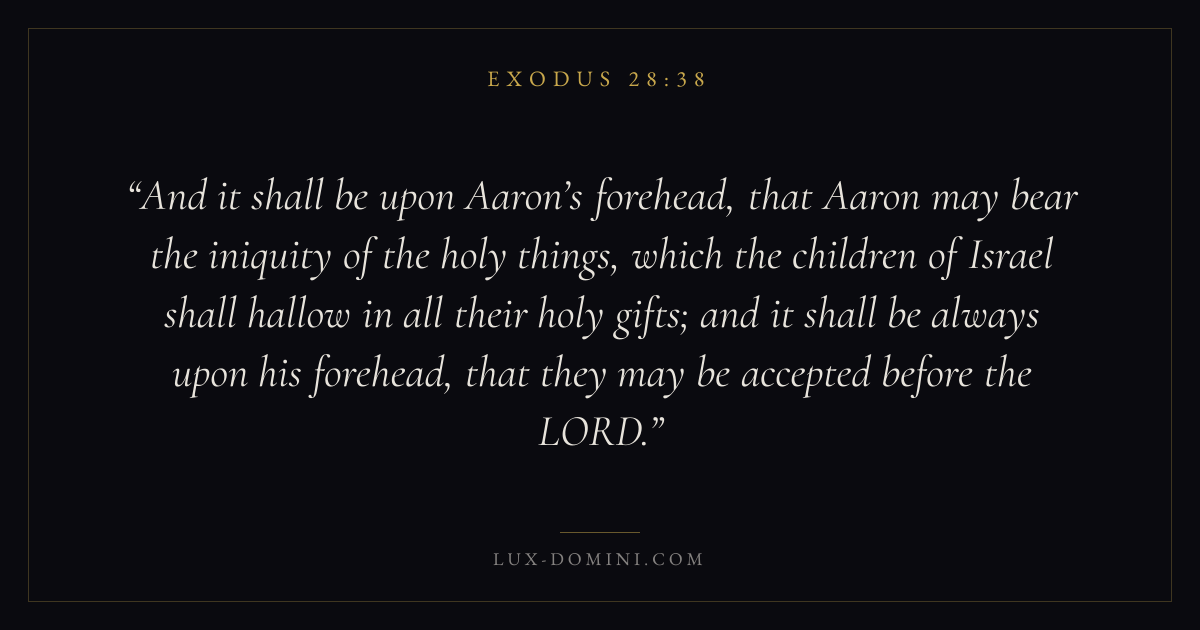 And it shall be upon Aaron’s forehead, that Aaron may bear the iniquity of the holy things, which the children of Israel shall hallow in all their holy gifts; and it shall be always upon his forehead, that they may be accepted before the LORD.