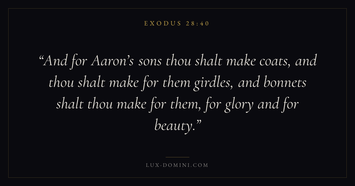 And for Aaron’s sons thou shalt make coats, and thou shalt make for them girdles, and bonnets shalt thou make for them, for glory and for beauty.