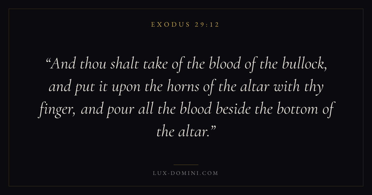 And thou shalt take of the blood of the bullock, and put it upon the horns of the altar with thy finger, and pour all the blood beside the bottom of the altar.