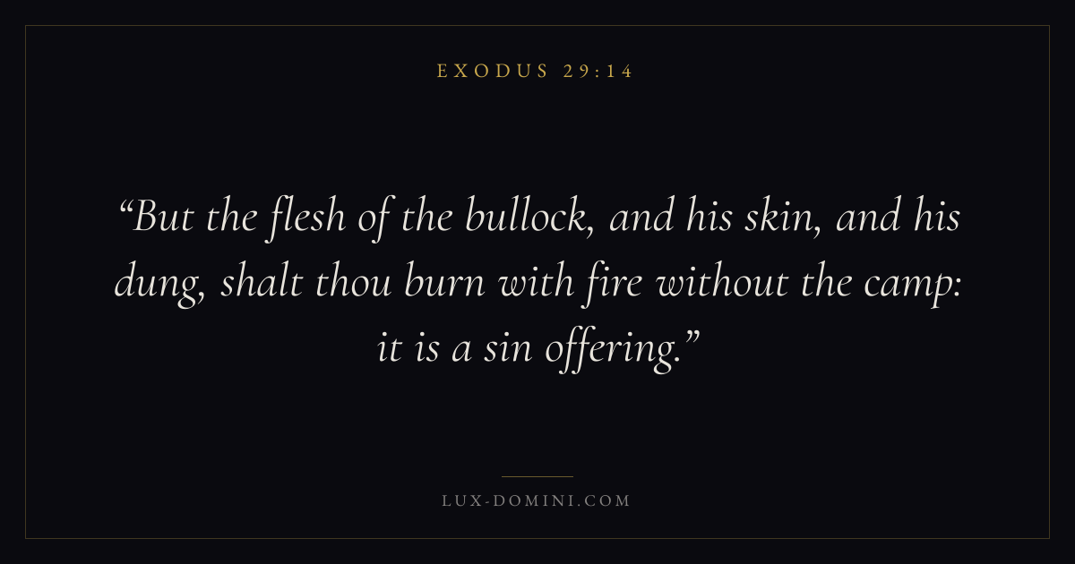But the flesh of the bullock, and his skin, and his dung, shalt thou burn with fire without the camp: it is a sin offering.