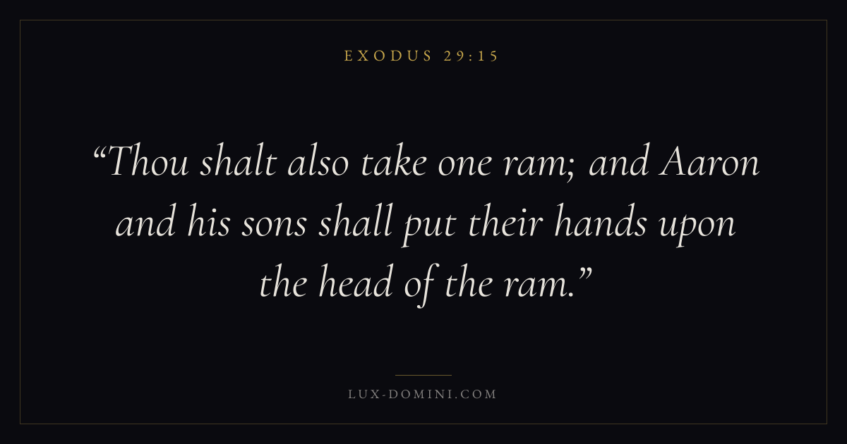 Thou shalt also take one ram; and Aaron and his sons shall put their hands upon the head of the ram.