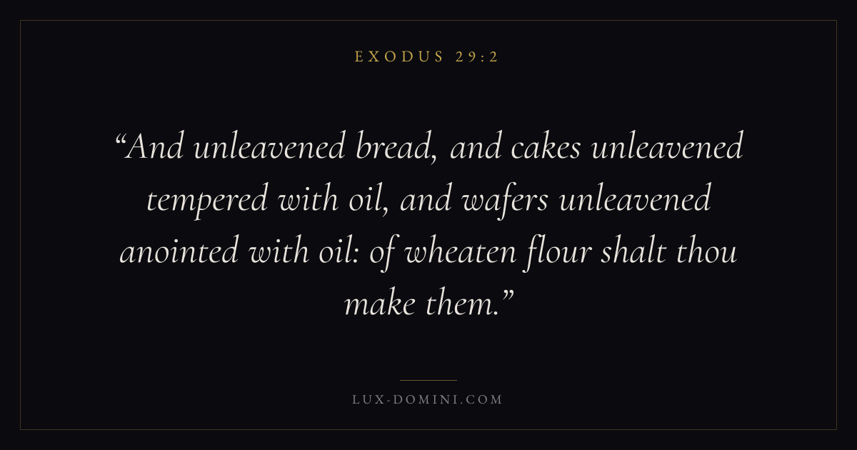 And unleavened bread, and cakes unleavened tempered with oil, and wafers unleavened anointed with oil: of wheaten flour shalt thou make them.