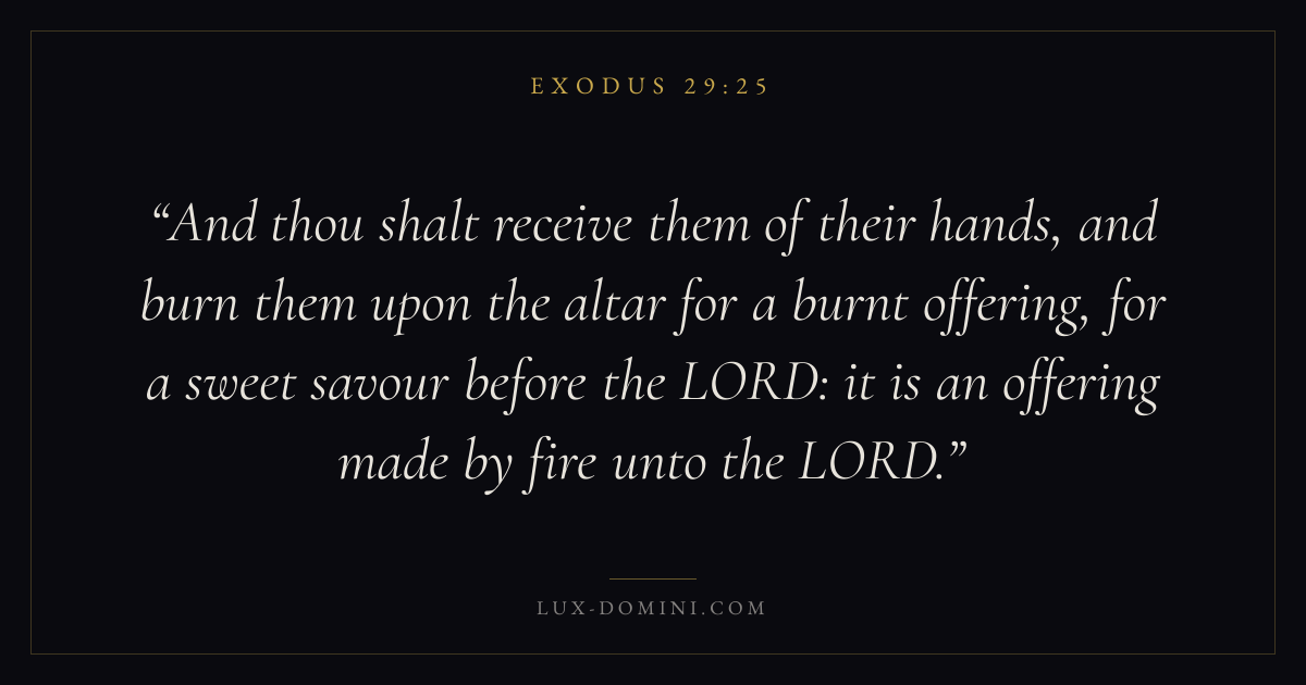 And thou shalt receive them of their hands, and burn them upon the altar for a burnt offering, for a sweet savour before the LORD: it is an offering made by fire unto the LORD.
