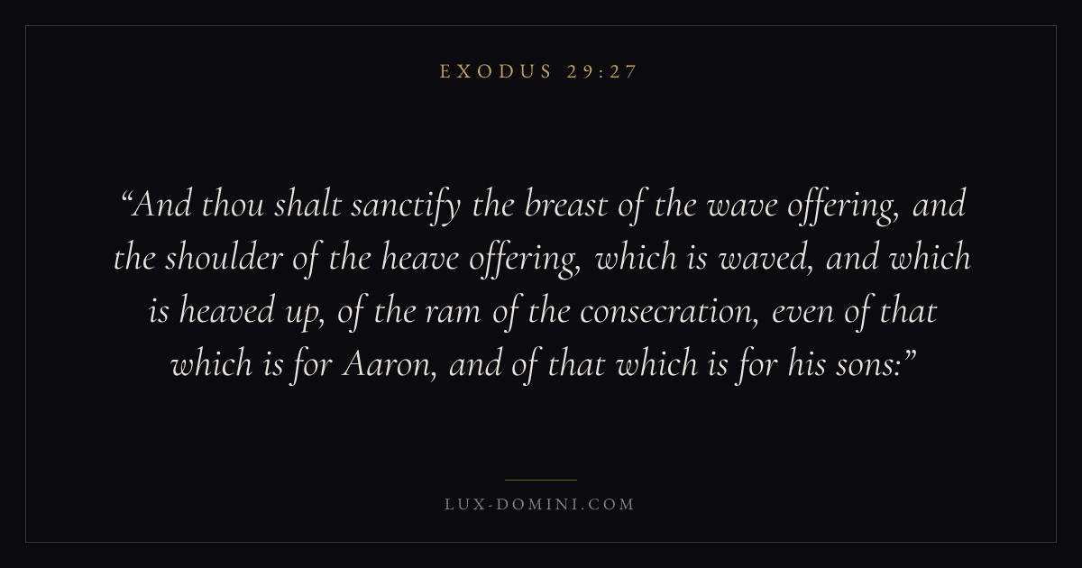 And thou shalt sanctify the breast of the wave offering, and the shoulder of the heave offering, which is waved, and which is heaved up, of the ram of the consecration, even of that which is for Aaron, and of that which is for his sons: