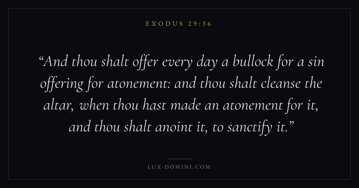 And thou shalt offer every day a bullock for a sin offering for atonement: and thou shalt cleanse the altar, when thou hast made an atonement for it, and thou shalt anoint it, to sanctify it.