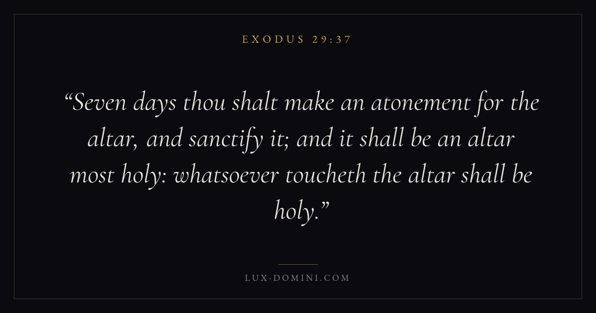 Seven days thou shalt make an atonement for the altar, and sanctify it; and it shall be an altar most holy: whatsoever toucheth the altar shall be holy.