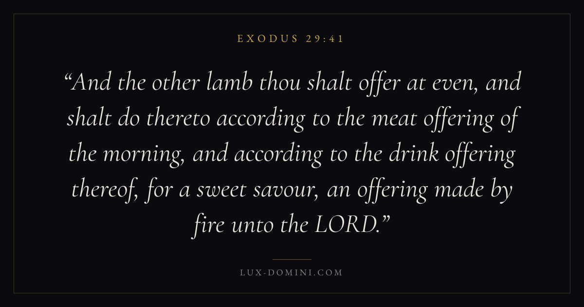 And the other lamb thou shalt offer at even, and shalt do thereto according to the meat offering of the morning, and according to the drink offering thereof, for a sweet savour, an offering made by fire unto the LORD.