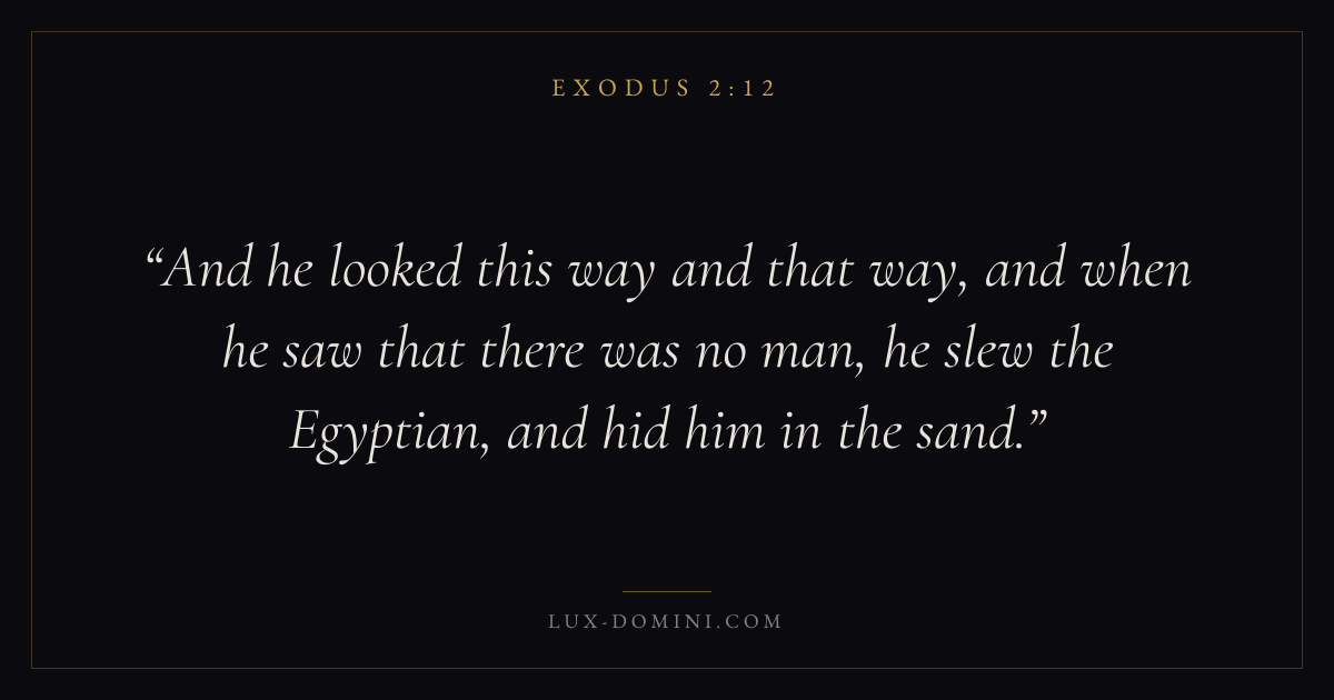 And he looked this way and that way, and when he saw that there was no man, he slew the Egyptian, and hid him in the sand.