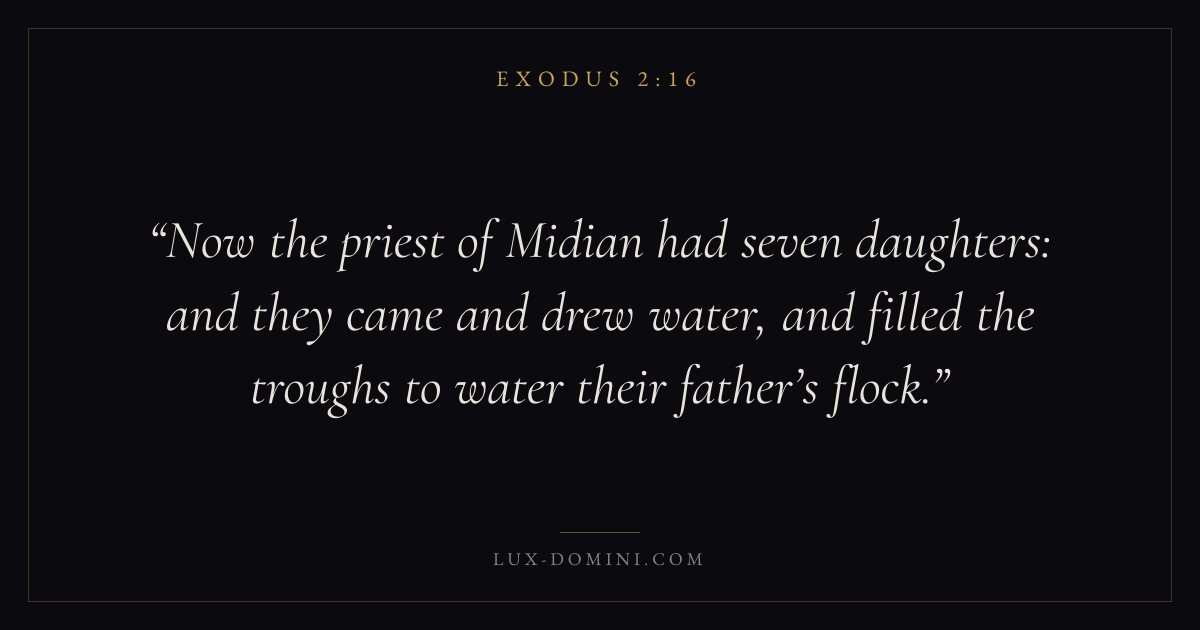 Now the priest of Midian had seven daughters: and they came and drew water, and filled the troughs to water their father’s flock.
