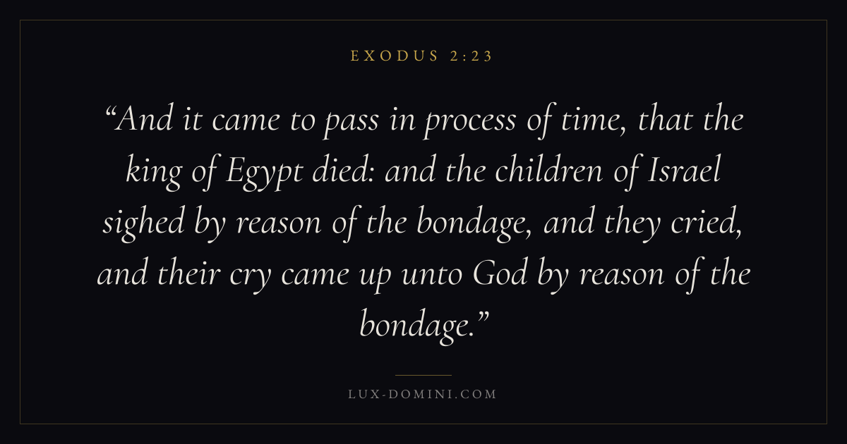 And it came to pass in process of time, that the king of Egypt died: and the children of Israel sighed by reason of the bondage, and they cried, and their cry came up unto God by reason of the bondage.