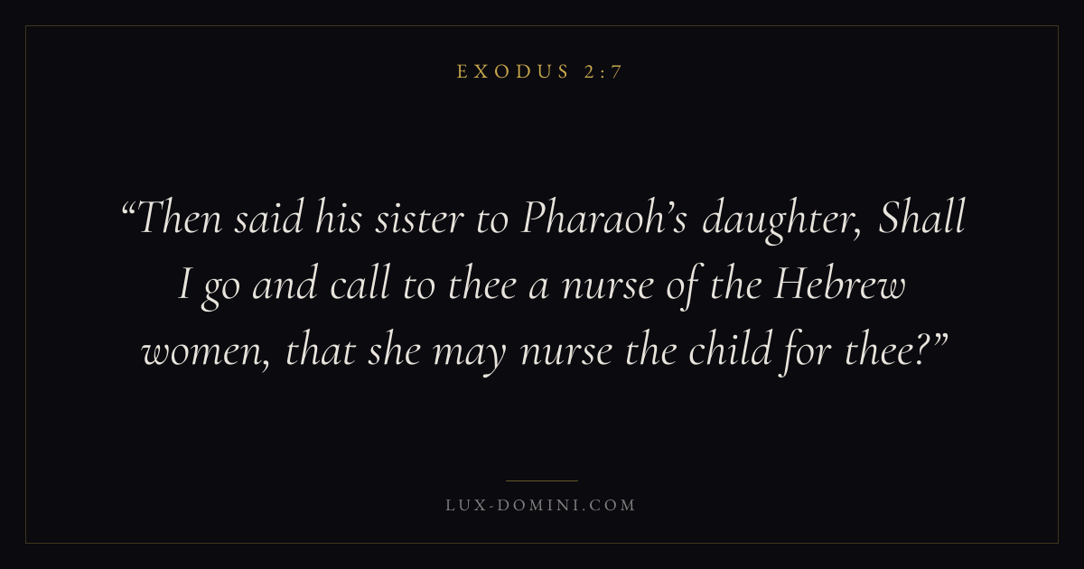 Then said his sister to Pharaoh’s daughter, Shall I go and call to thee a nurse of the Hebrew women, that she may nurse the child for thee?