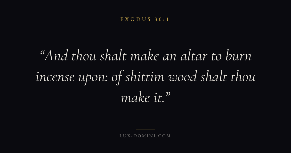 And thou shalt make an altar to burn incense upon: of shittim wood shalt thou make it.