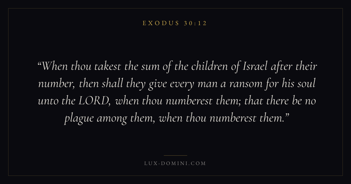 When thou takest the sum of the children of Israel after their number, then shall they give every man a ransom for his soul unto the LORD, when thou numberest them; that there be no plague among them, when thou numberest them.