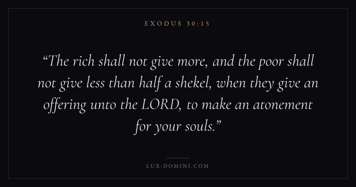 The rich shall not give more, and the poor shall not give less than half a shekel, when they give an offering unto the LORD, to make an atonement for your souls.