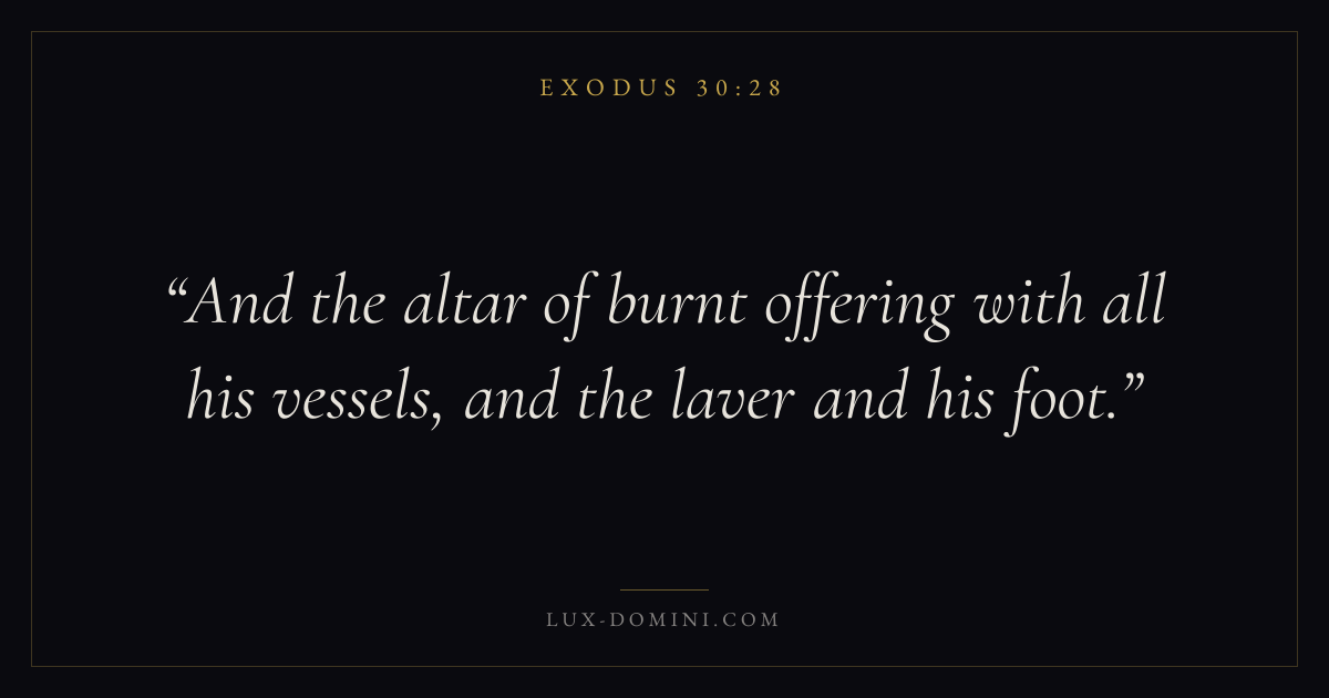 And the altar of burnt offering with all his vessels, and the laver and his foot.