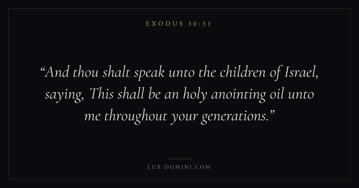 And thou shalt speak unto the children of Israel, saying, This shall be an holy anointing oil unto me throughout your generations.