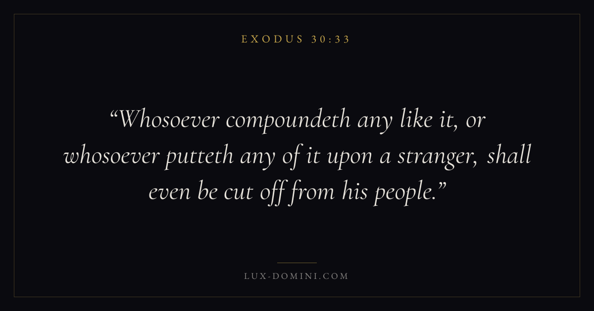 Whosoever compoundeth any like it, or whosoever putteth any of it upon a stranger, shall even be cut off from his people.