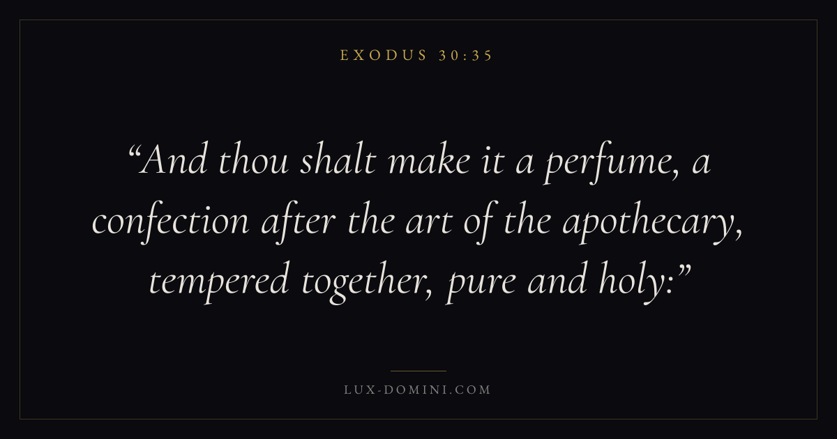 And thou shalt make it a perfume, a confection after the art of the apothecary, tempered together, pure and holy: