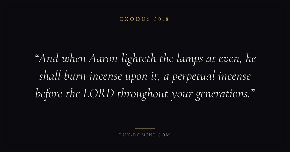 And when Aaron lighteth the lamps at even, he shall burn incense upon it, a perpetual incense before the LORD throughout your generations.