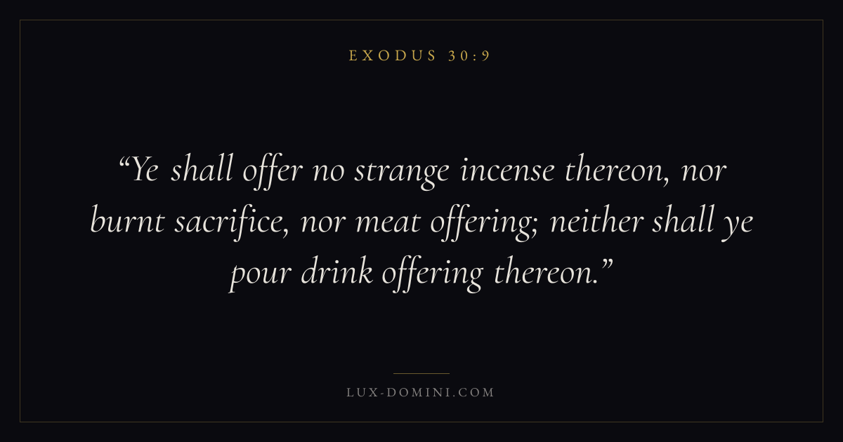 Ye shall offer no strange incense thereon, nor burnt sacrifice, nor meat offering; neither shall ye pour drink offering thereon.