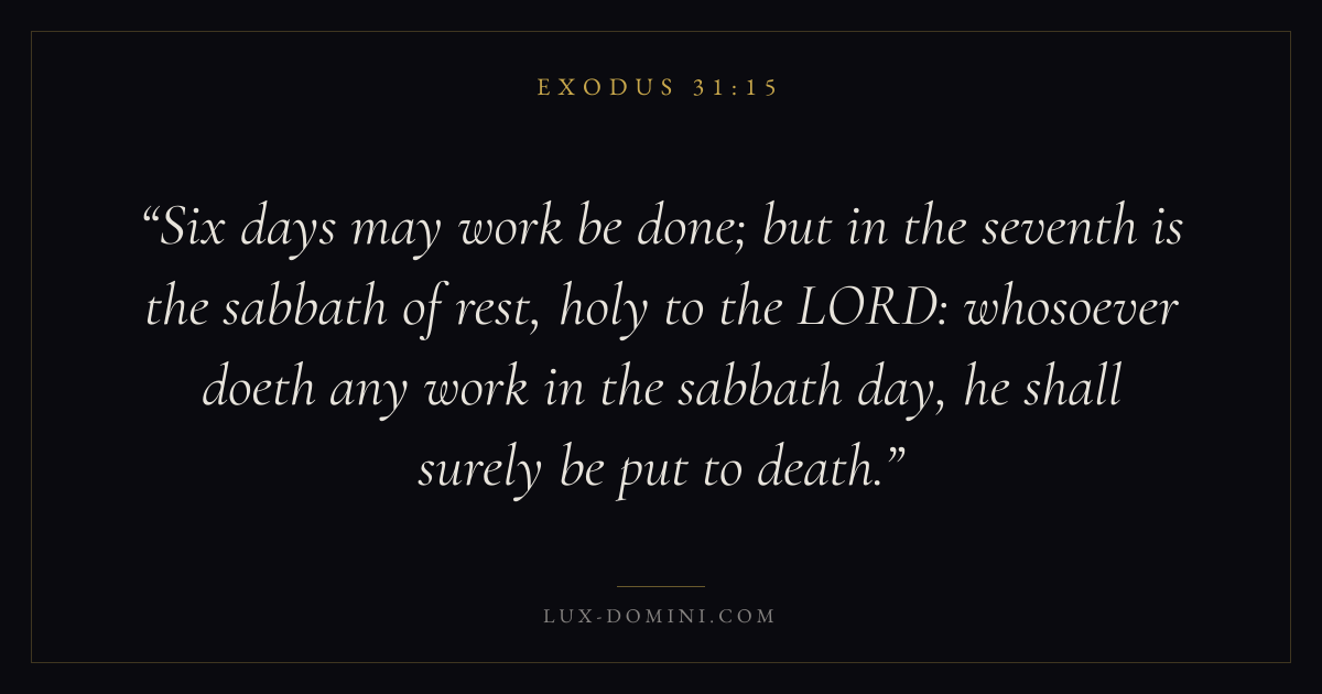 Six days may work be done; but in the seventh is the sabbath of rest, holy to the LORD: whosoever doeth any work in the sabbath day, he shall surely be put to death.