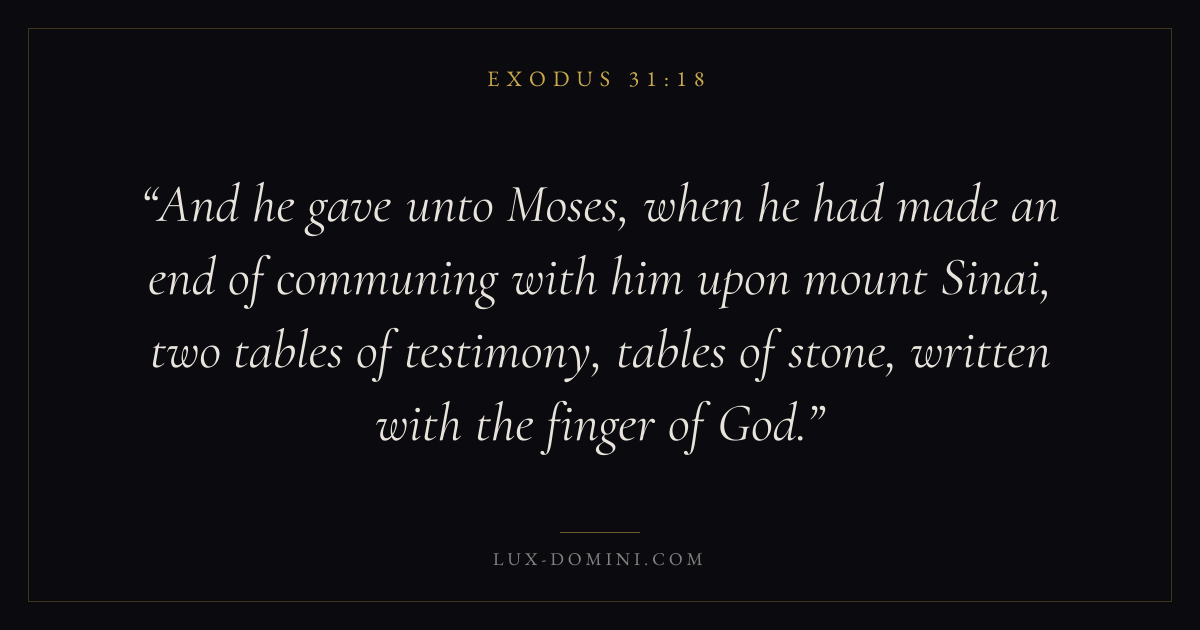 And he gave unto Moses, when he had made an end of communing with him upon mount Sinai, two tables of testimony, tables of stone, written with the finger of God.