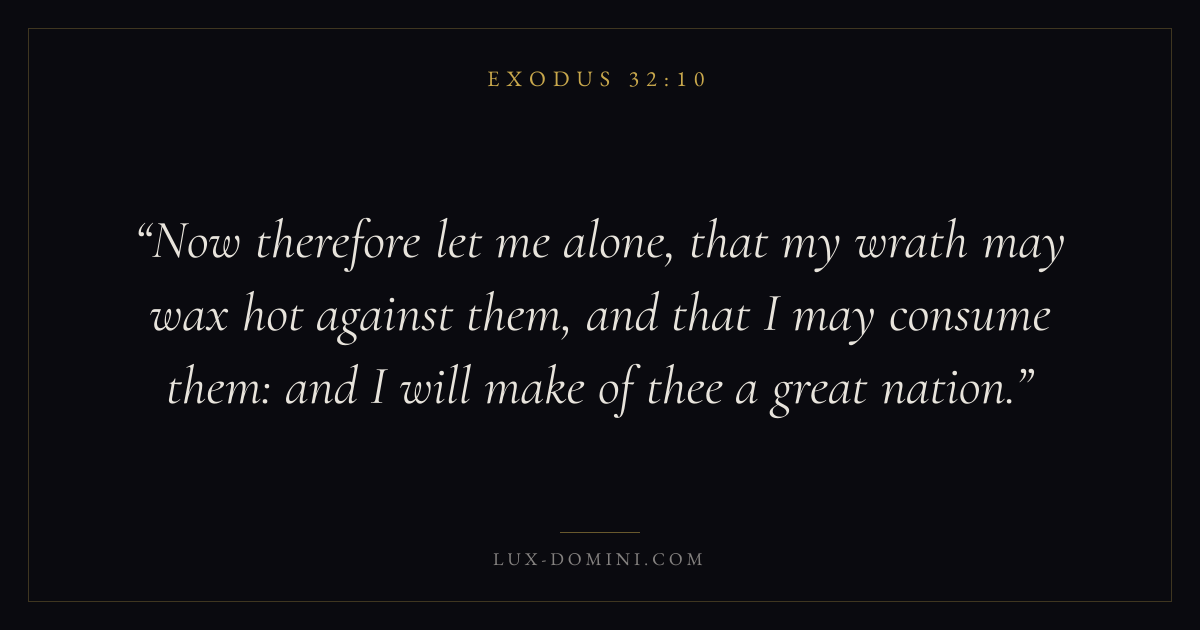 Now therefore let me alone, that my wrath may wax hot against them, and that I may consume them: and I will make of thee a great nation.