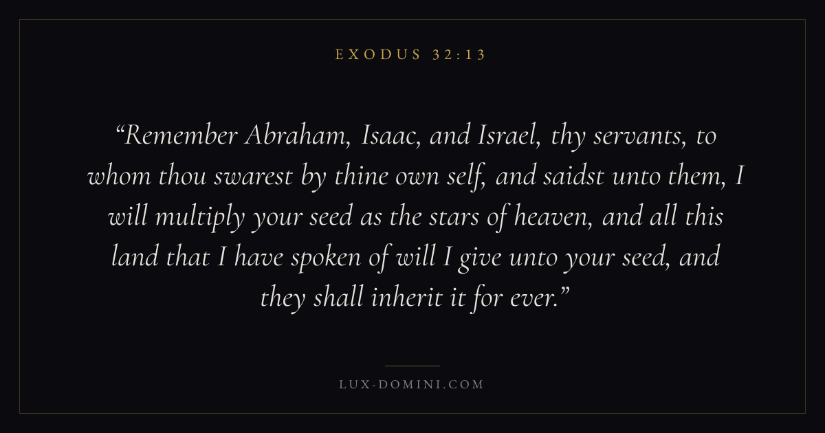 Remember Abraham, Isaac, and Israel, thy servants, to whom thou swarest by thine own self, and saidst unto them, I will multiply your seed as the stars of heaven, and all this land that I have spoken of will I give unto your seed, and they shall inherit it for ever.