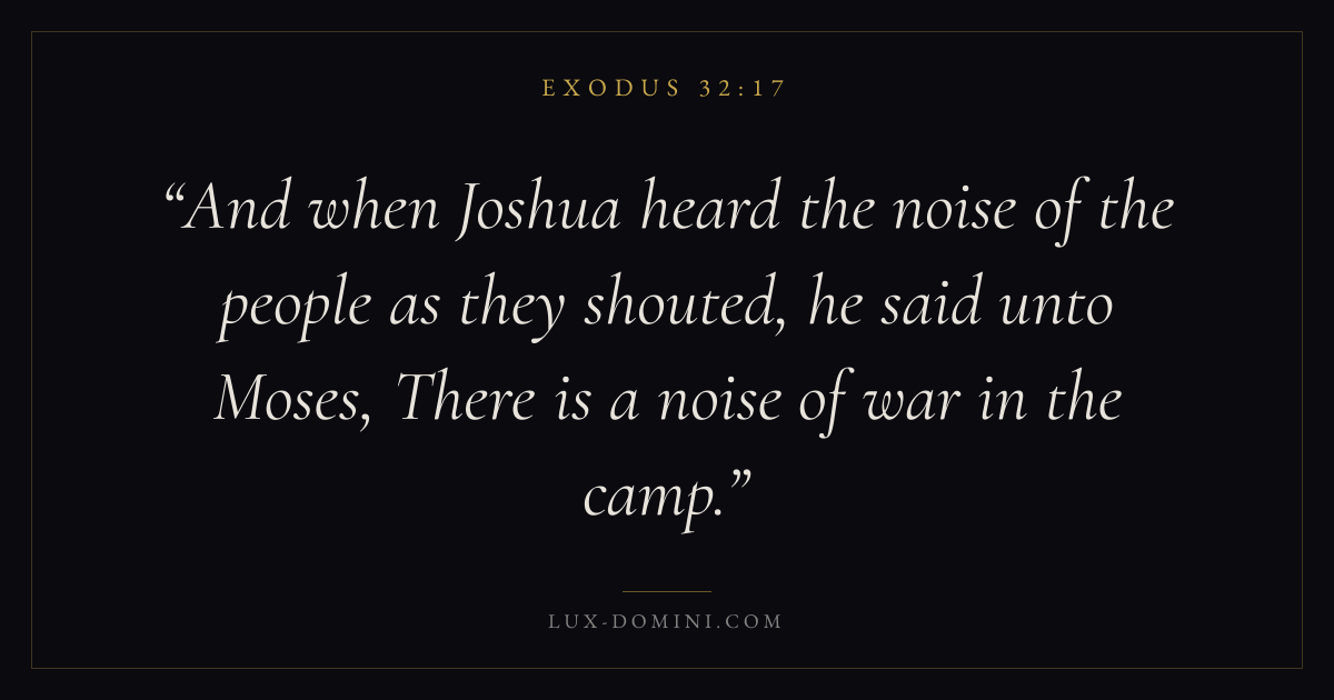 And when Joshua heard the noise of the people as they shouted, he said unto Moses, There is a noise of war in the camp.