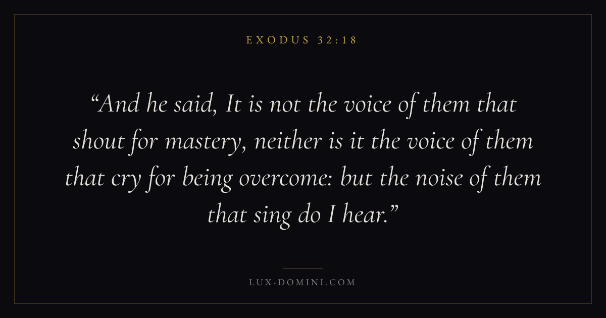 And he said, It is not the voice of them that shout for mastery, neither is it the voice of them that cry for being overcome: but the noise of them that sing do I hear.