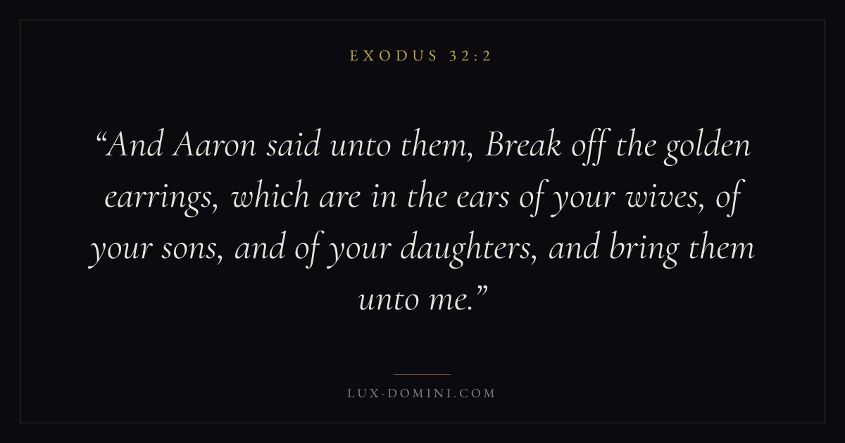 And Aaron said unto them, Break off the golden earrings, which are in the ears of your wives, of your sons, and of your daughters, and bring them unto me.