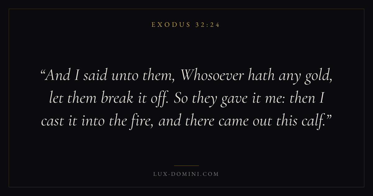 And I said unto them, Whosoever hath any gold, let them break it off. So they gave it me: then I cast it into the fire, and there came out this calf.