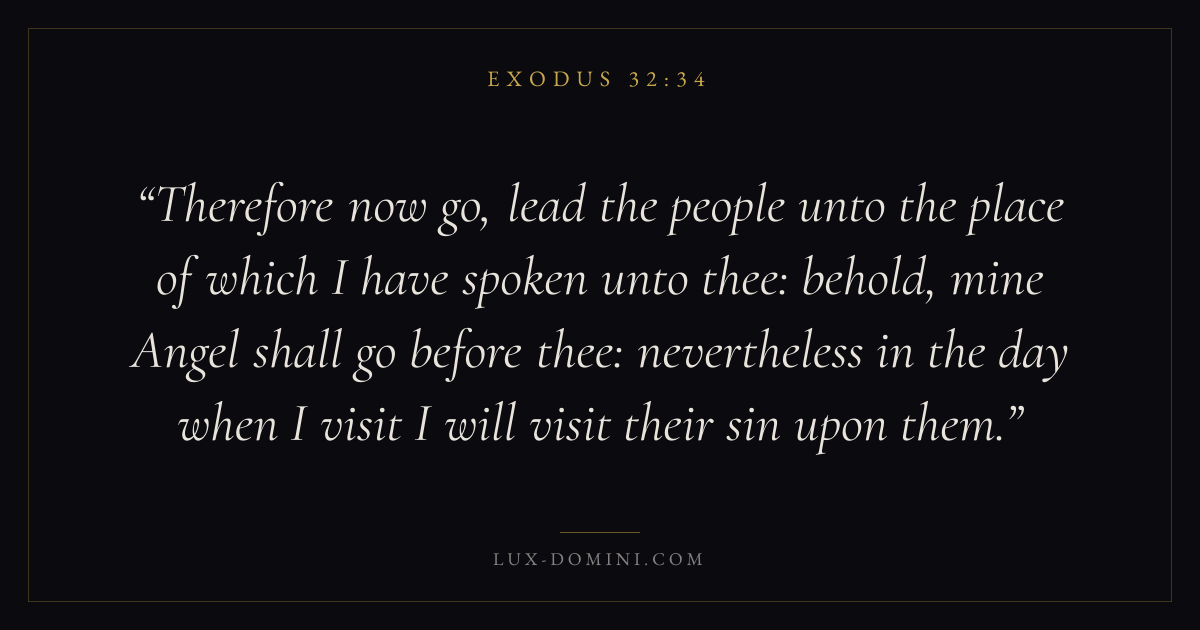 Therefore now go, lead the people unto the place of which I have spoken unto thee: behold, mine Angel shall go before thee: nevertheless in the day when I visit I will visit their sin upon them.