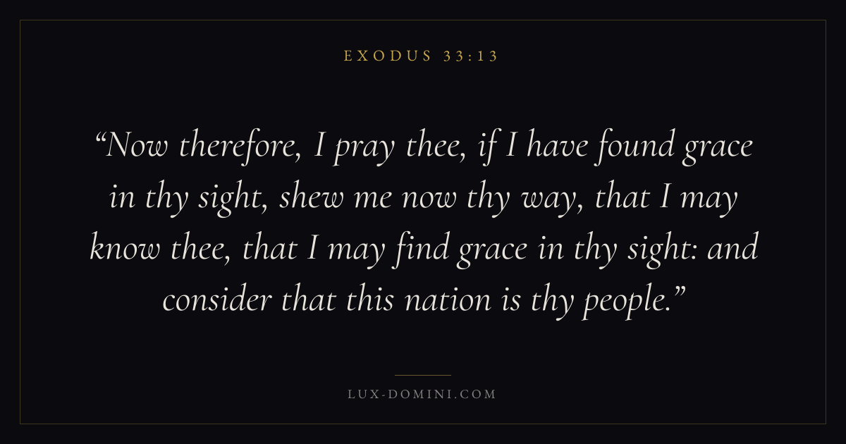 Now therefore, I pray thee, if I have found grace in thy sight, shew me now thy way, that I may know thee, that I may find grace in thy sight: and consider that this nation is thy people.