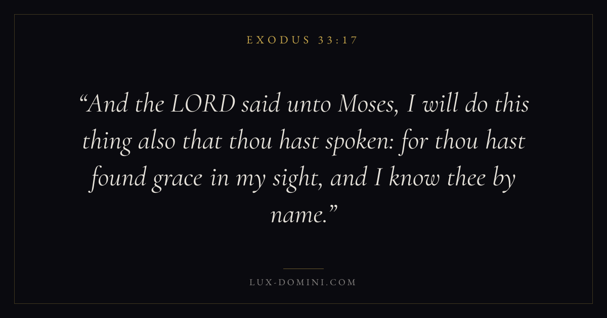 And the LORD said unto Moses, I will do this thing also that thou hast spoken: for thou hast found grace in my sight, and I know thee by name.