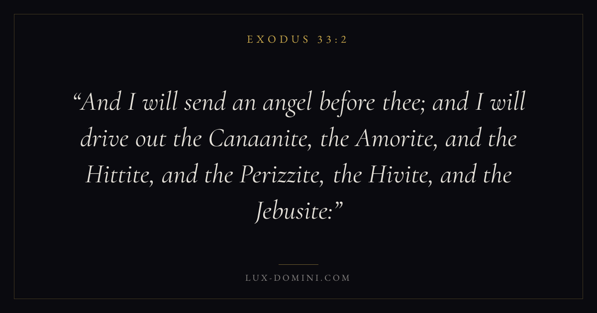 And I will send an angel before thee; and I will drive out the Canaanite, the Amorite, and the Hittite, and the Perizzite, the Hivite, and the Jebusite: