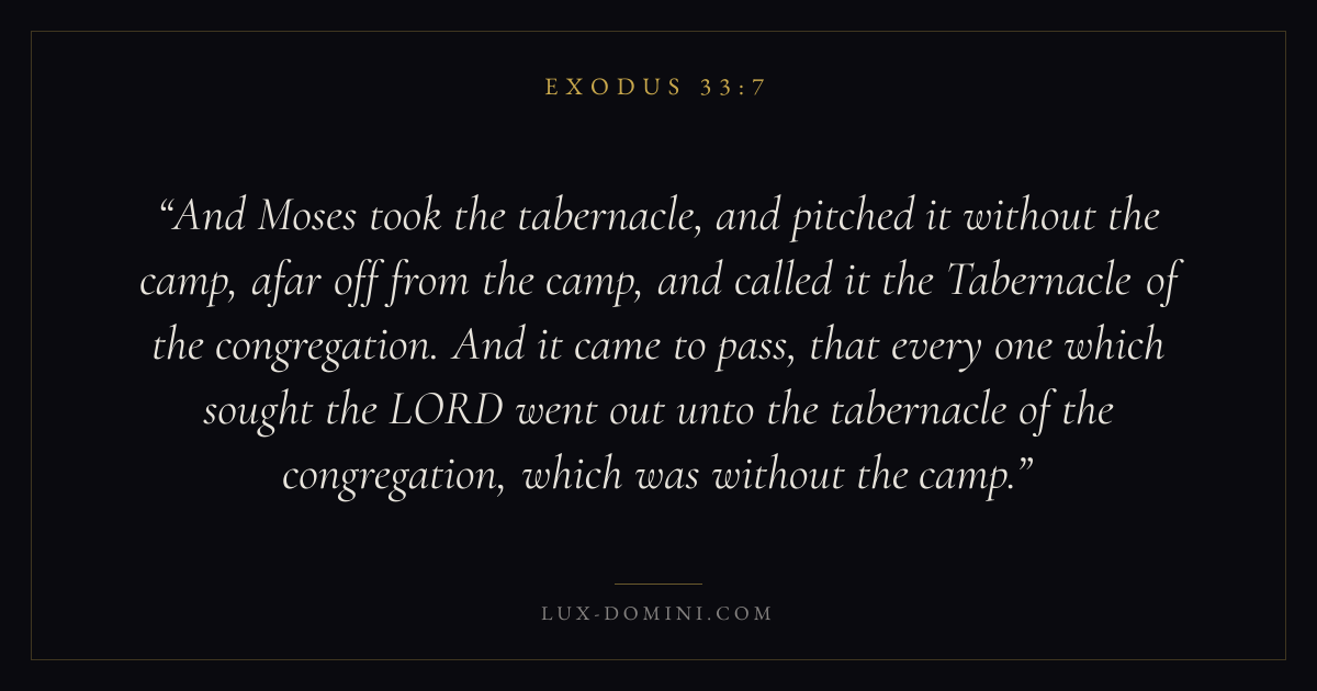 And Moses took the tabernacle, and pitched it without the camp, afar off from the camp, and called it the Tabernacle of the congregation. And it came to pass, that every one which sought the LORD went out unto the tabernacle of the congregation, which was without the camp.