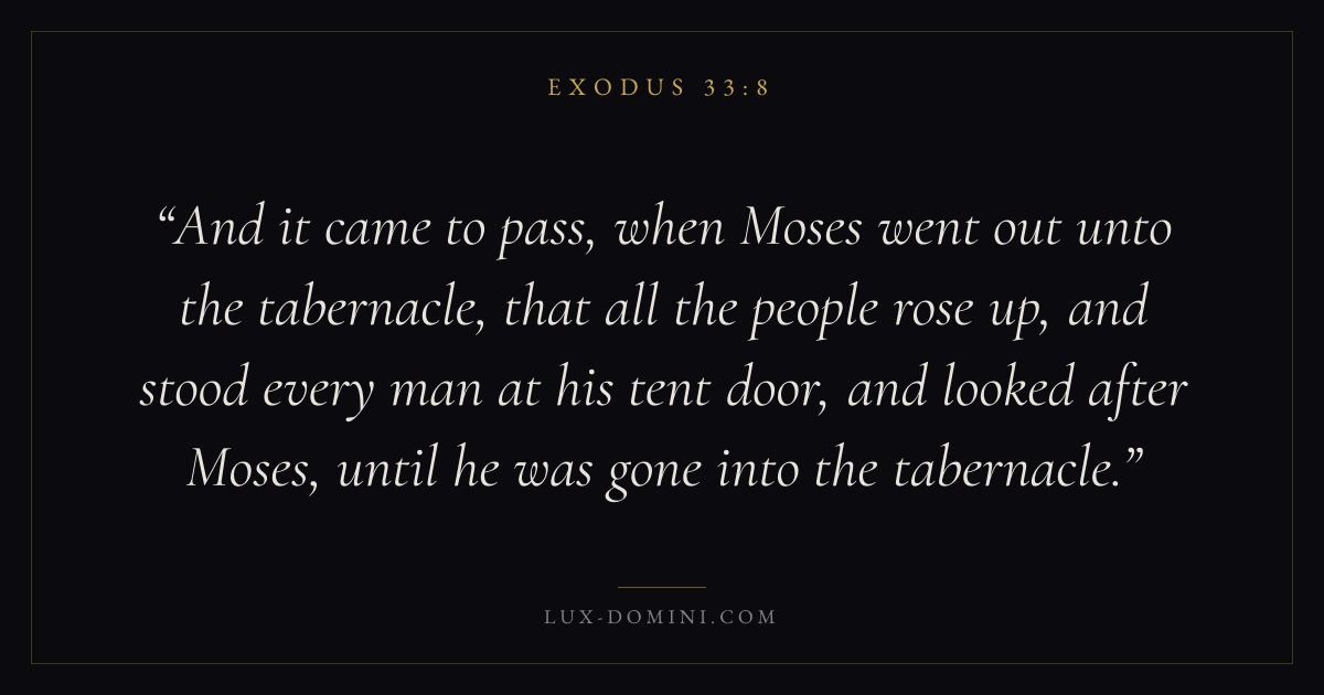 And it came to pass, when Moses went out unto the tabernacle, that all the people rose up, and stood every man at his tent door, and looked after Moses, until he was gone into the tabernacle.