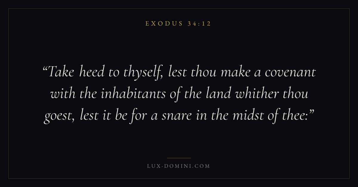 Take heed to thyself, lest thou make a covenant with the inhabitants of the land whither thou goest, lest it be for a snare in the midst of thee: