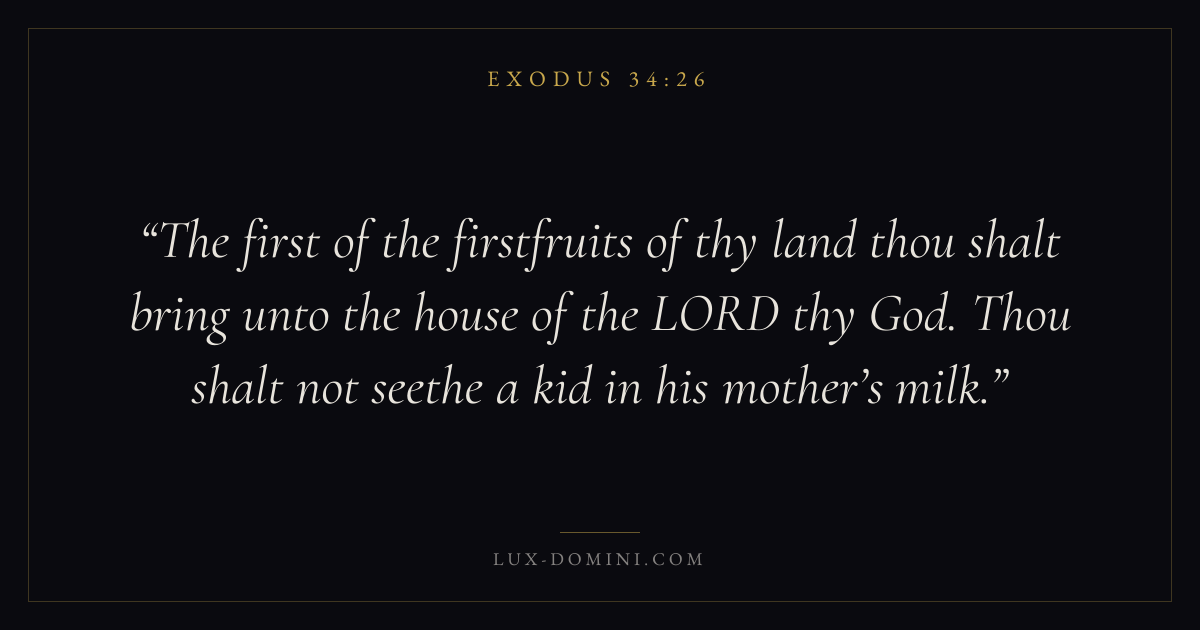 The first of the firstfruits of thy land thou shalt bring unto the house of the LORD thy God. Thou shalt not seethe a kid in his mother’s milk.