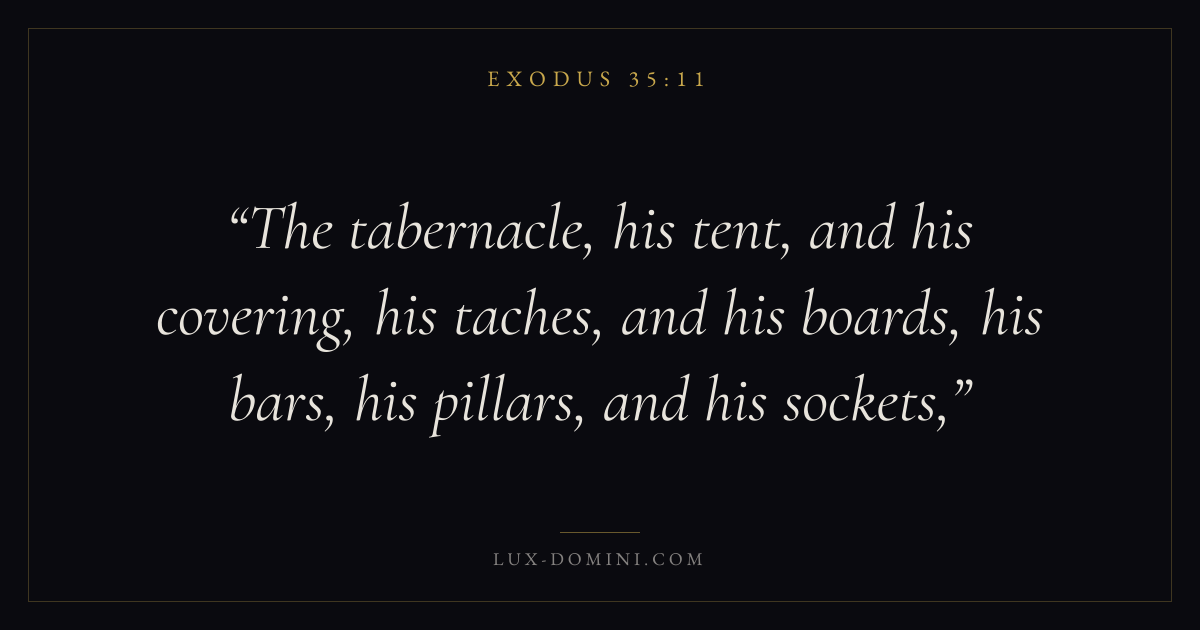 The tabernacle, his tent, and his covering, his taches, and his boards, his bars, his pillars, and his sockets,