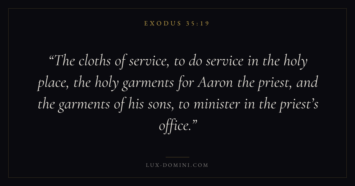 The cloths of service, to do service in the holy place, the holy garments for Aaron the priest, and the garments of his sons, to minister in the priest’s office.