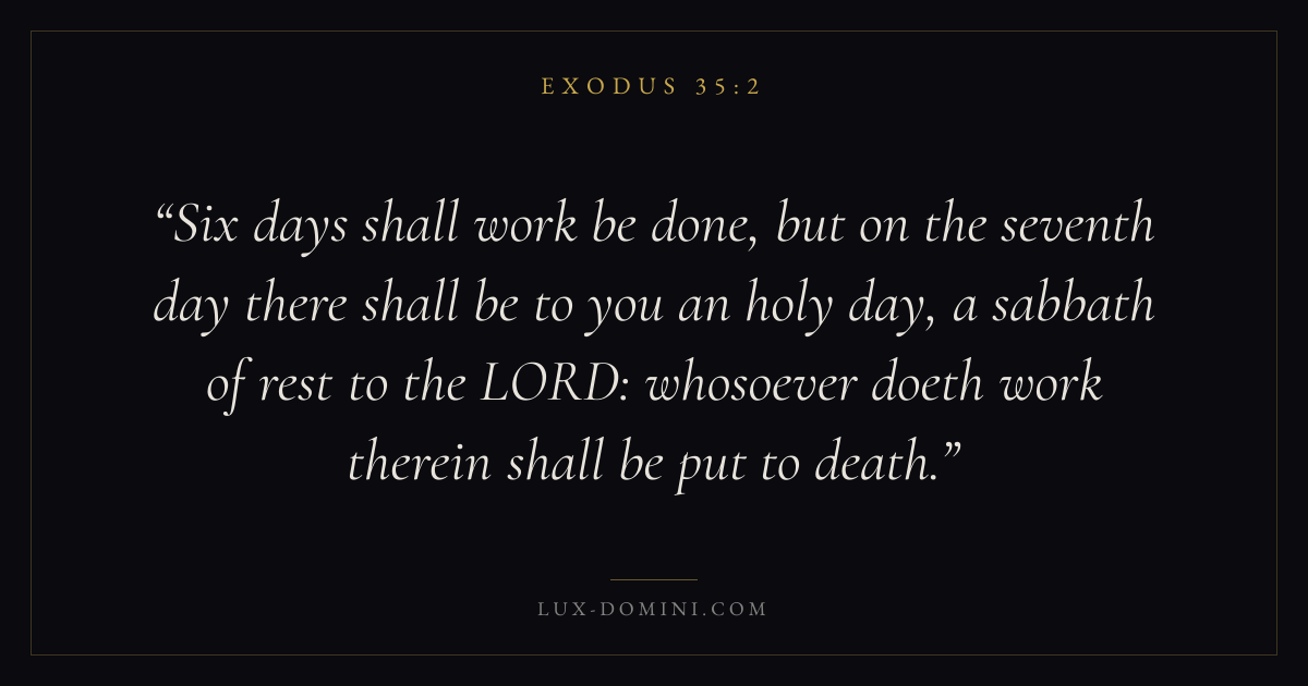 Six days shall work be done, but on the seventh day there shall be to you an holy day, a sabbath of rest to the LORD: whosoever doeth work therein shall be put to death.