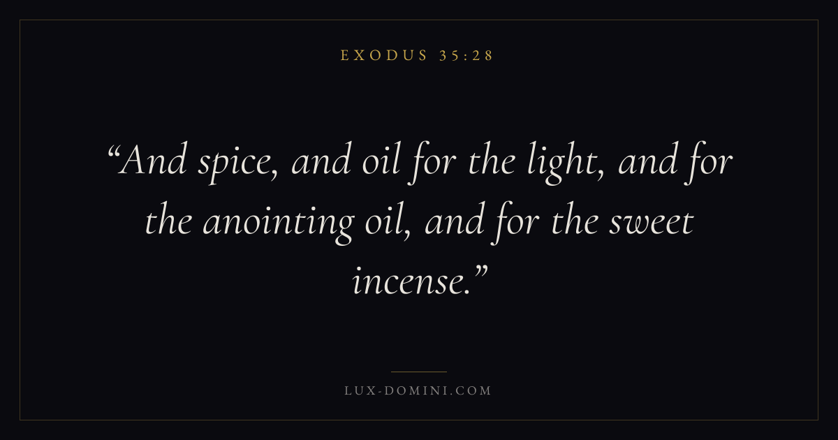 And spice, and oil for the light, and for the anointing oil, and for the sweet incense.