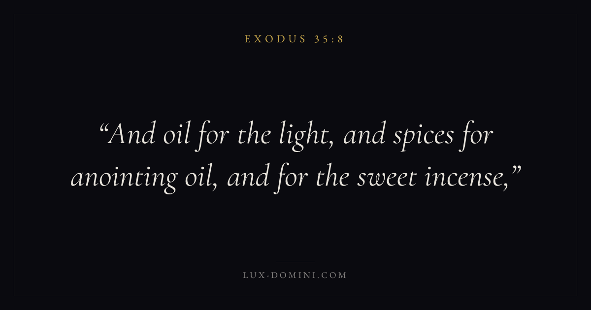 And oil for the light, and spices for anointing oil, and for the sweet incense,