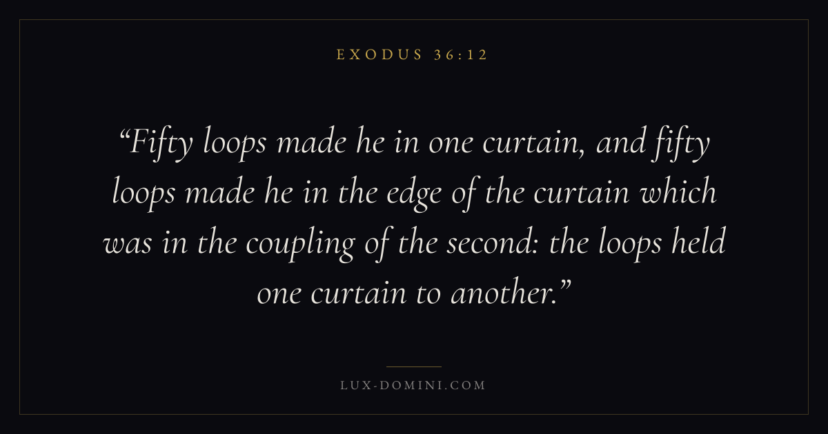 Fifty loops made he in one curtain, and fifty loops made he in the edge of the curtain which was in the coupling of the second: the loops held one curtain to another.