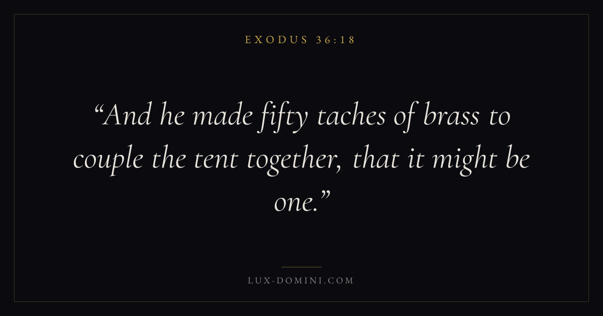 And he made fifty taches of brass to couple the tent together, that it might be one.