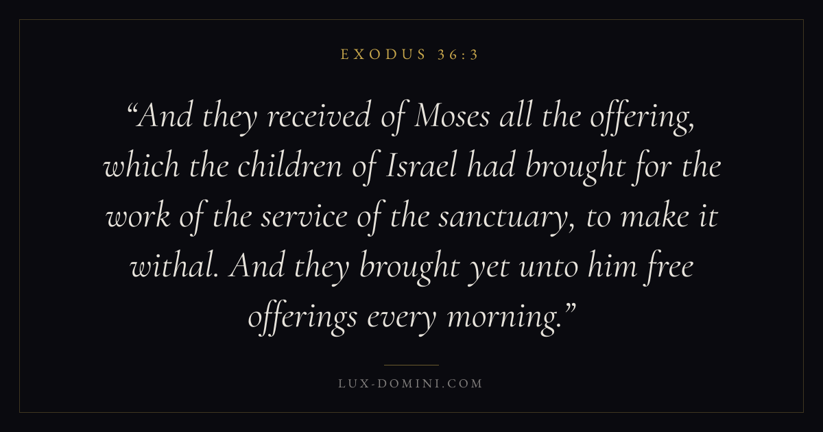 And they received of Moses all the offering, which the children of Israel had brought for the work of the service of the sanctuary, to make it withal. And they brought yet unto him free offerings every morning.
