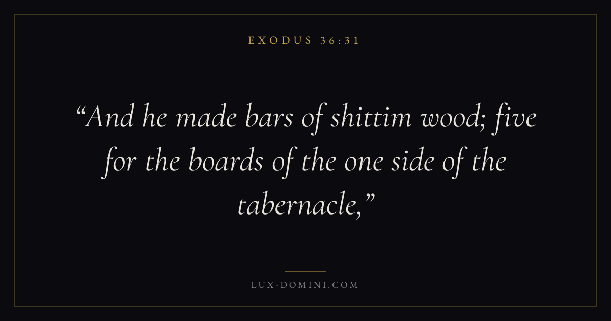 And he made bars of shittim wood; five for the boards of the one side of the tabernacle,