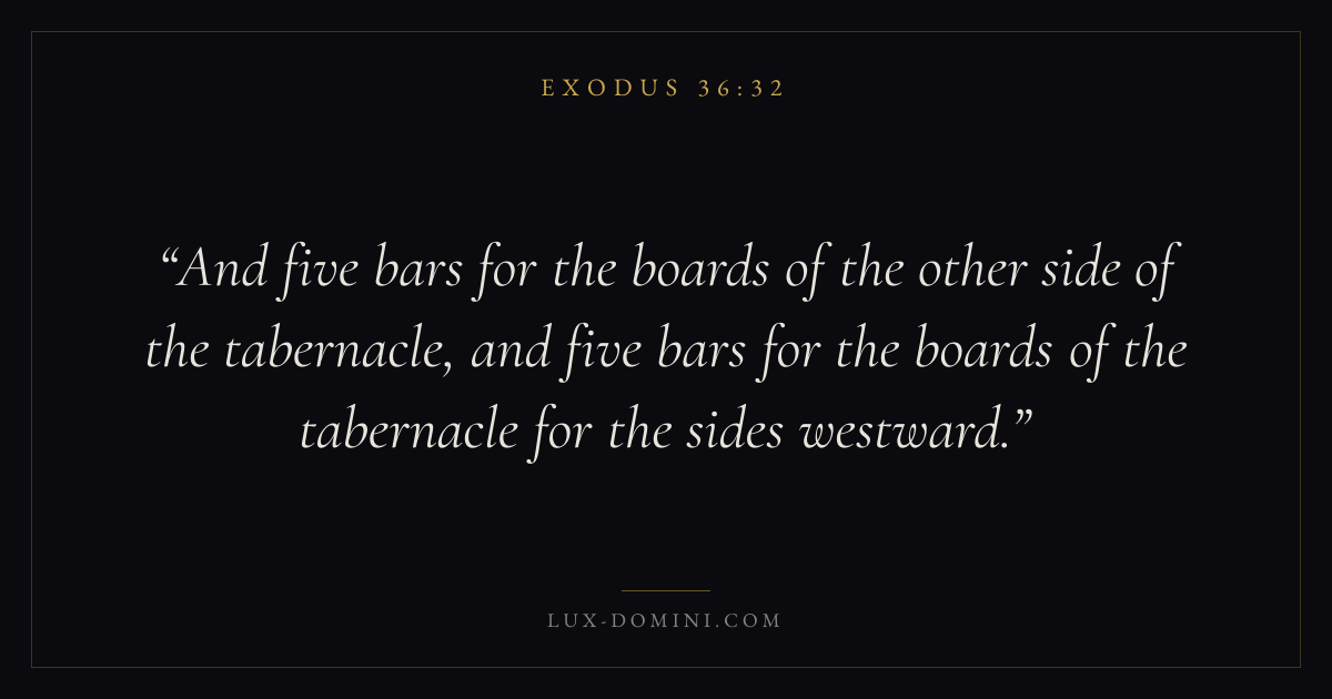 And five bars for the boards of the other side of the tabernacle, and five bars for the boards of the tabernacle for the sides westward.